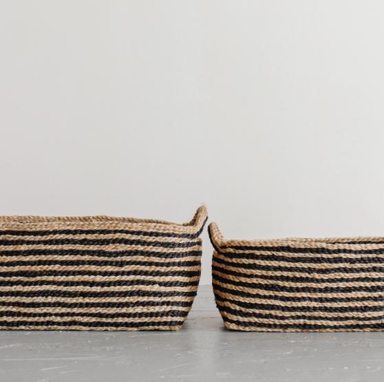 Our jute collection has been expanded with these soft striped cabinet baskets.