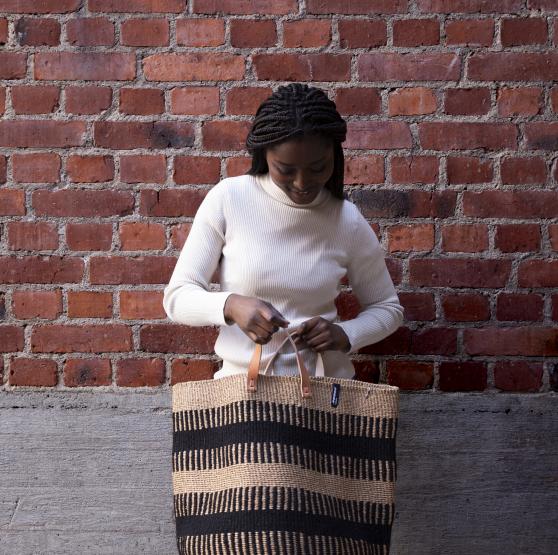 Grand sac naturel tissé à la main à partir de deux matières naturelles, le fil de laine et la ficelle de papier recyclé, ce qui les rend souples et doux au toucher.