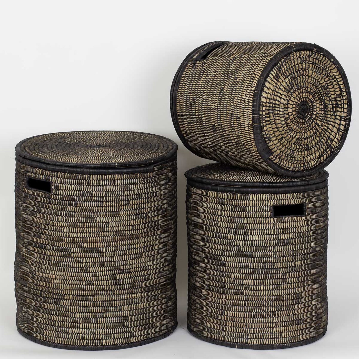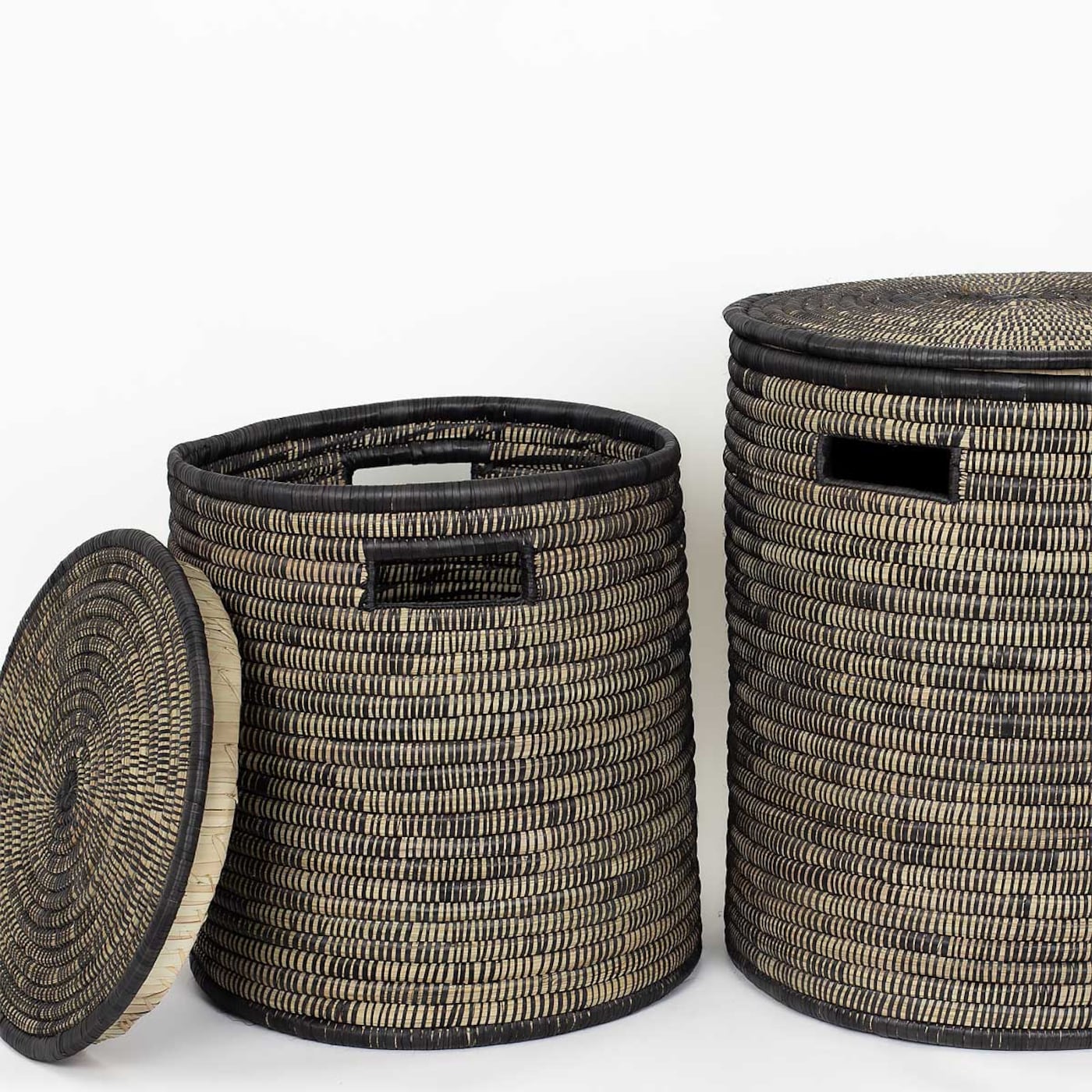 Ces paniers robustes tressés en feuilles de palmier cultivées sont parfaits pour le linge ou le rangement.