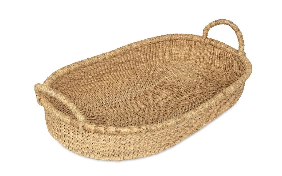Prachtige met de hand geweven babyverschoonmand, ethisch en zorgvuldig gemaakt in Noord-Ghana.