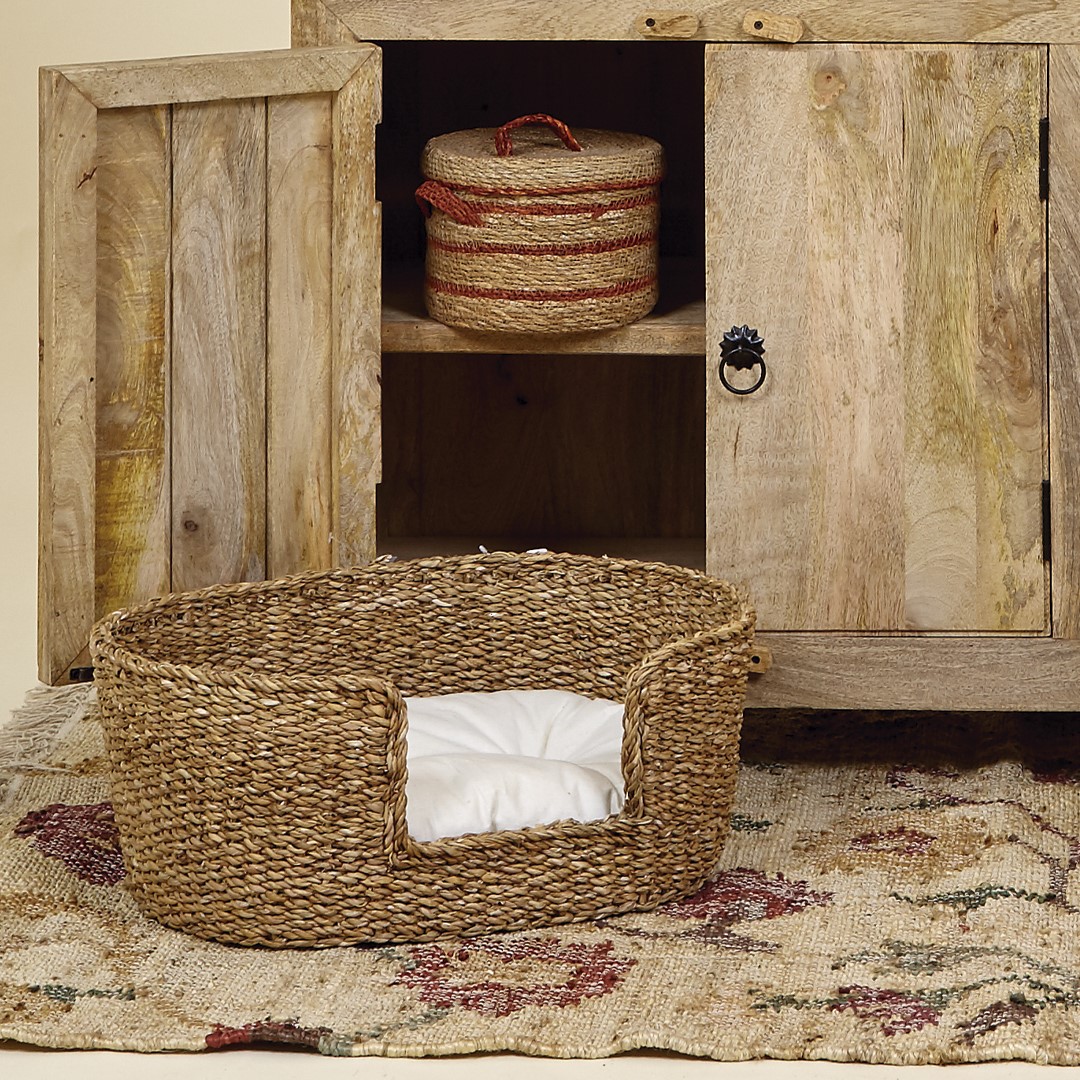 Deze ovale hogla dierenmand, gemaakt in waterhyacinth, is het ideale nest voor uw hond of katten.