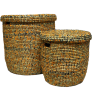 Unique, leather finished, baskets with beautiful handles. Handmade in West Africa.