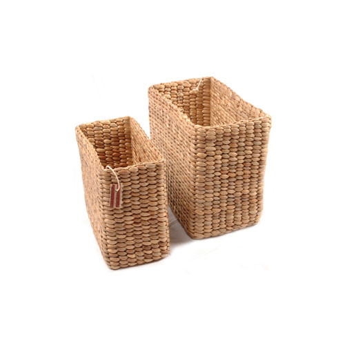 These storage baskets in the light waterhaycinth material are ideal magazine holders.
