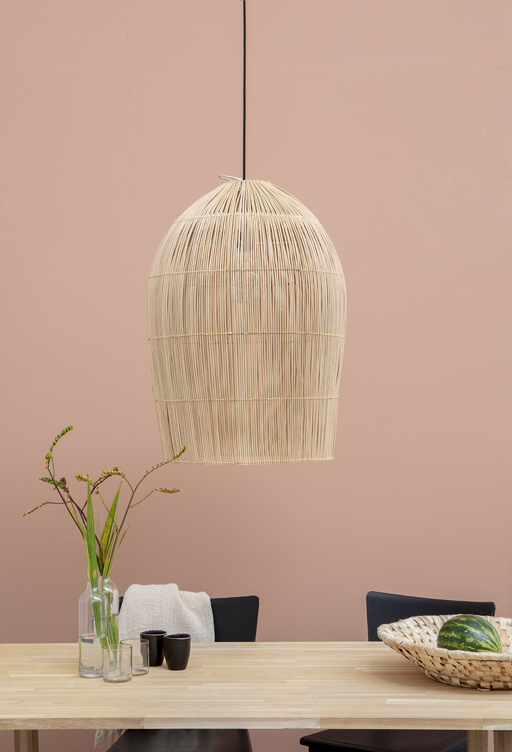 The traditional shape of the Lampshade Lentera fits any interior style.