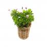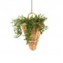 Round baskets for flowers with plastic lining and metal chains. In-and outdoor use.
