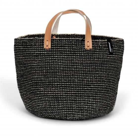 Ce sac à main est fabriqué à partir d'une combinaison de solides cordes en sisal gris et de restes de laine recyclée. Les poignées en cuir sont très confortables en main.