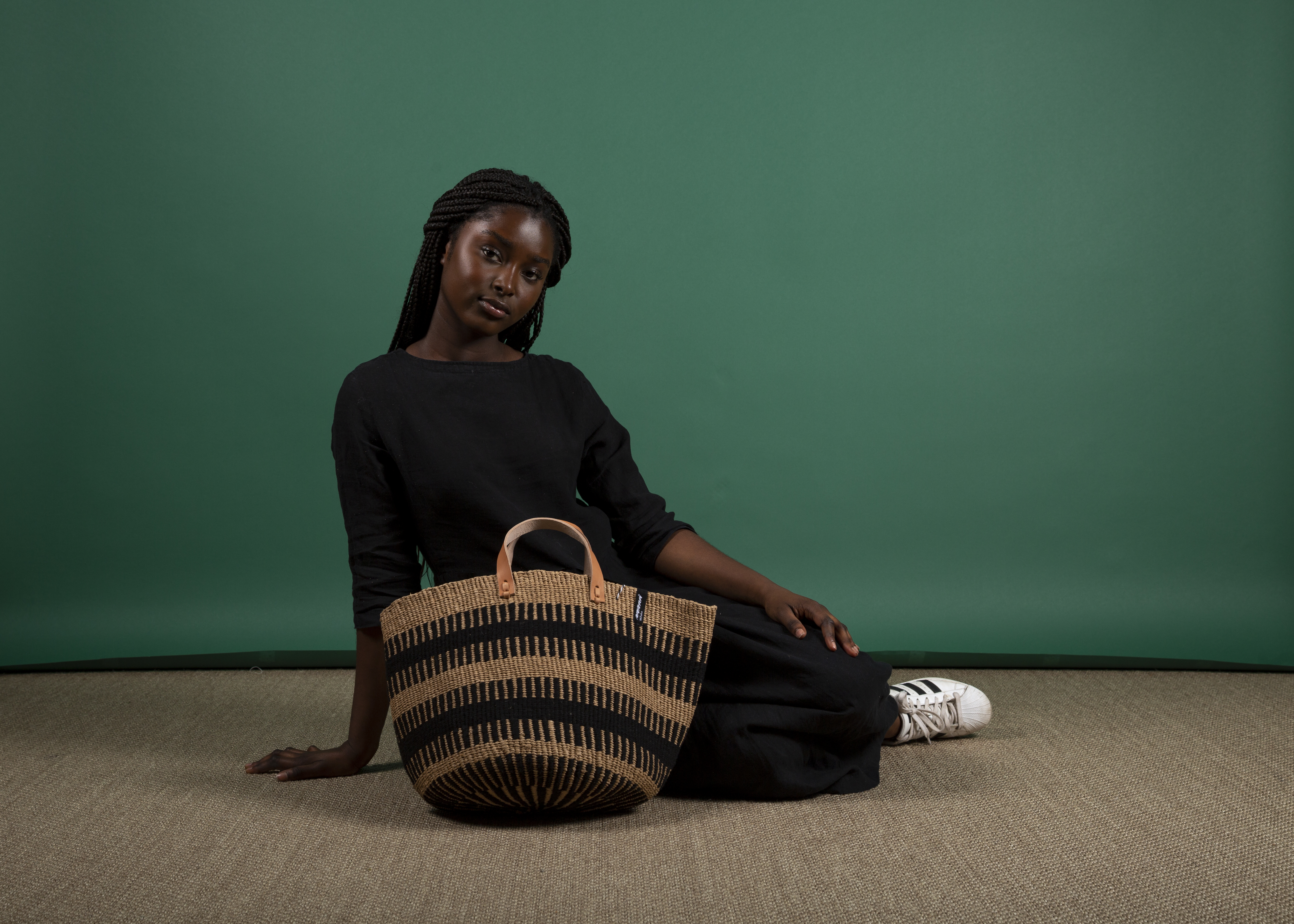 Panier naturel tissé à la main à partir de deux matières naturelles, le fil de laine et la ficelle de papier recyclé, ce qui les rend souples et doux au toucher.