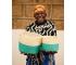 Deze turquoise en witte kleurblokmand zal jarenlang een kleurrijk leven leiden in uw huis.
