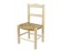 Onbewerkte kinderstoel met ene kader in populieren hout stoeltje en een biezen zitting.