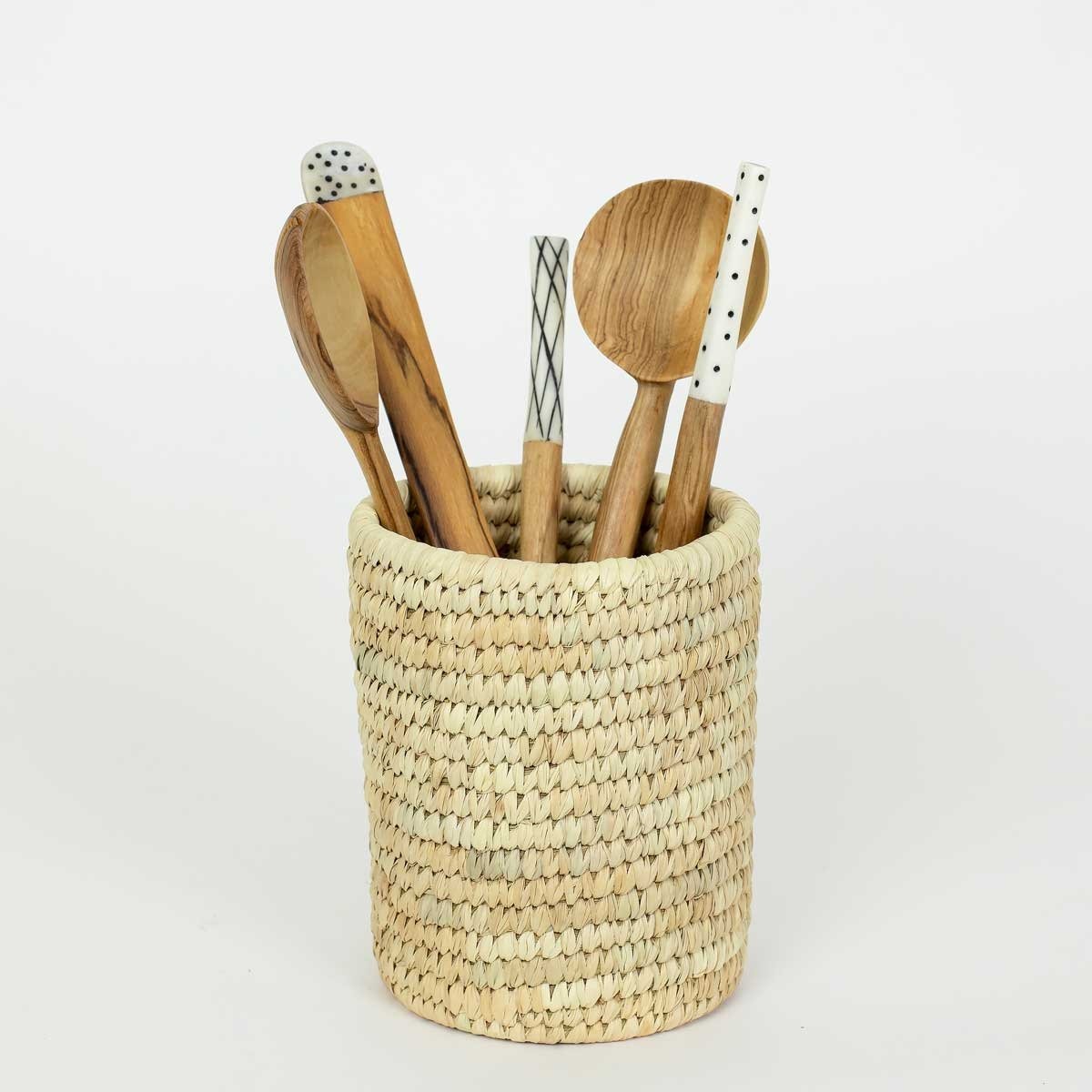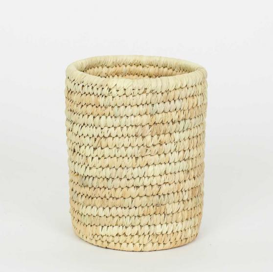 Klein rond potje in palmblad. Ideaal om potloden en pennen in te verzamelen.